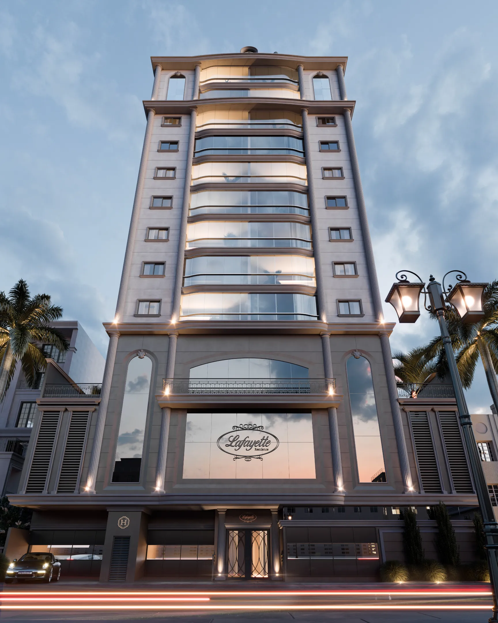 Com uma torre de aproximadamente 43 metros de altura, o Lafayette Residence possui 18 unidades sendo dois apartamentos por andar. O projeto arquitetônico e de interiores tem assinatura do renomado escritório ProDesign, que referenciou a arquitetura neoclássica francesa, padrão da marca H•Empreendimentos.